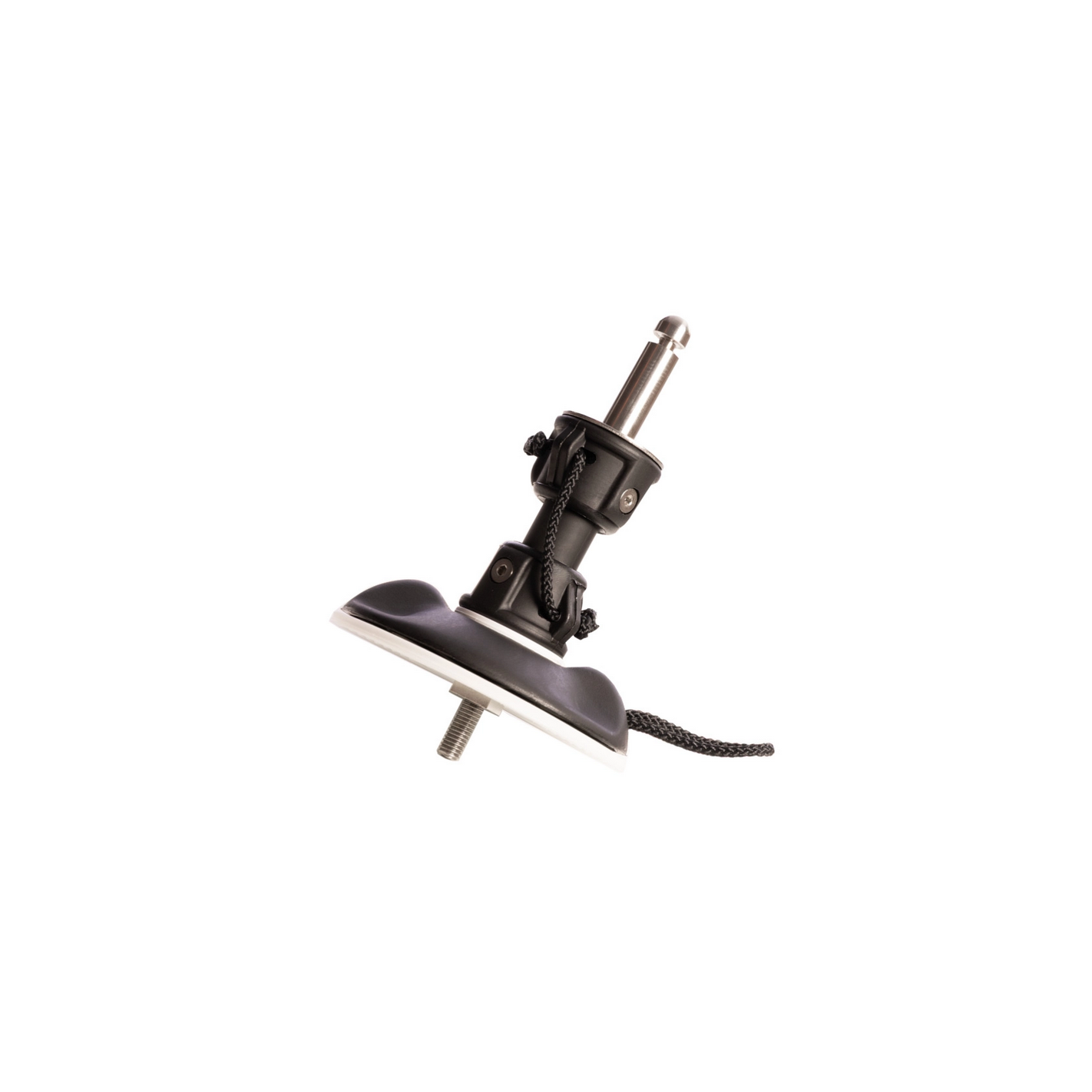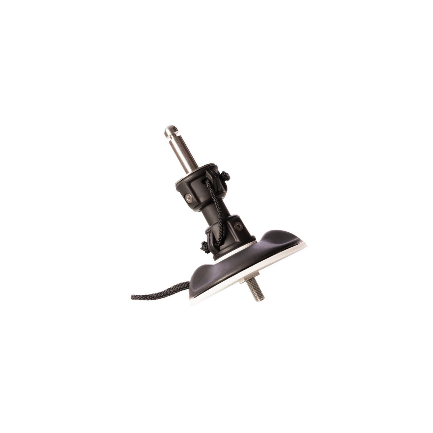 The Universal Tendon BAse with V2A U-Pin is easy to handle: simply place the enclosed slot nut in the rail, attach the mast foot and tighten. The included plastic shim prevents scratching of the board when twisting on. The flat, resistant tendon ensures a direct power transmission into the board.