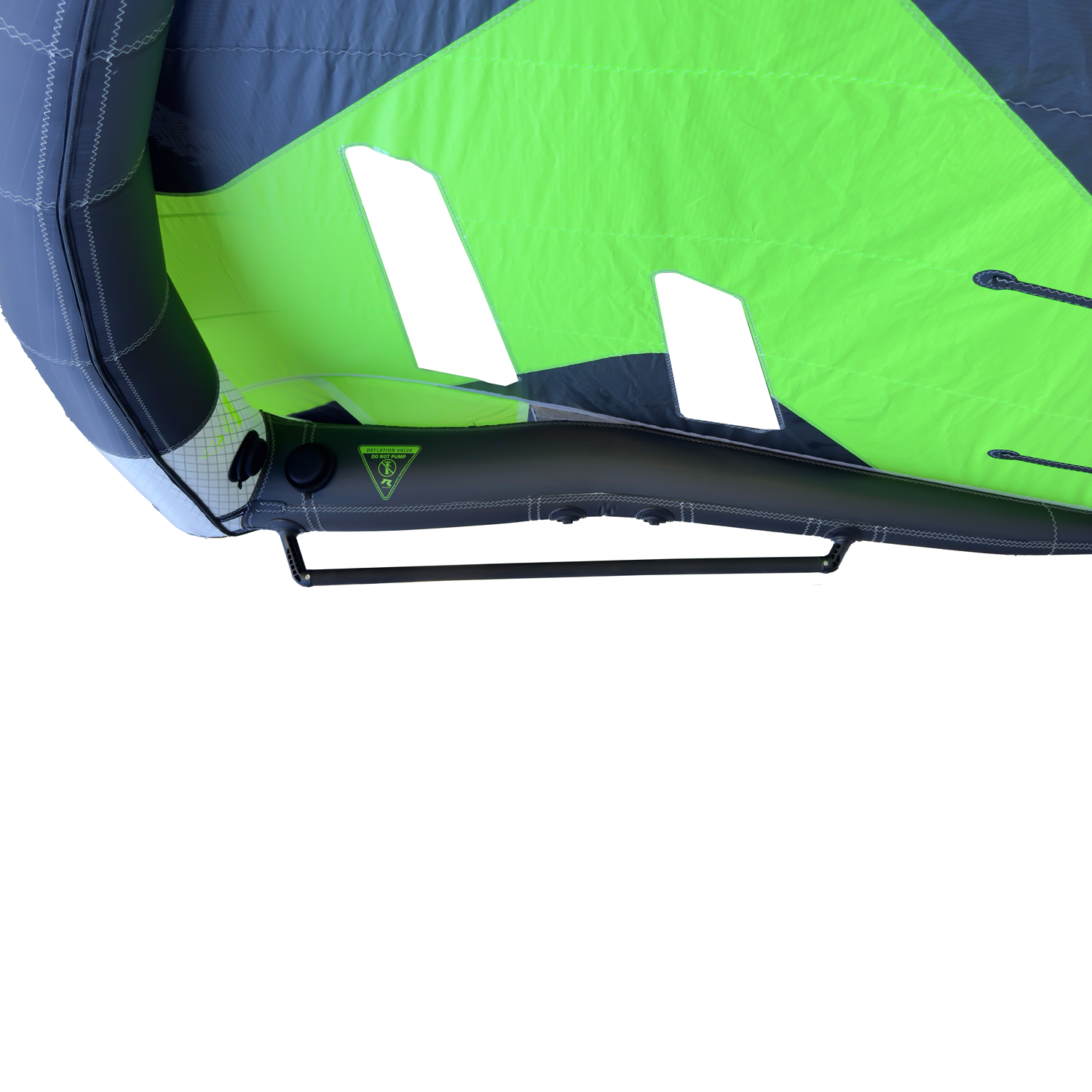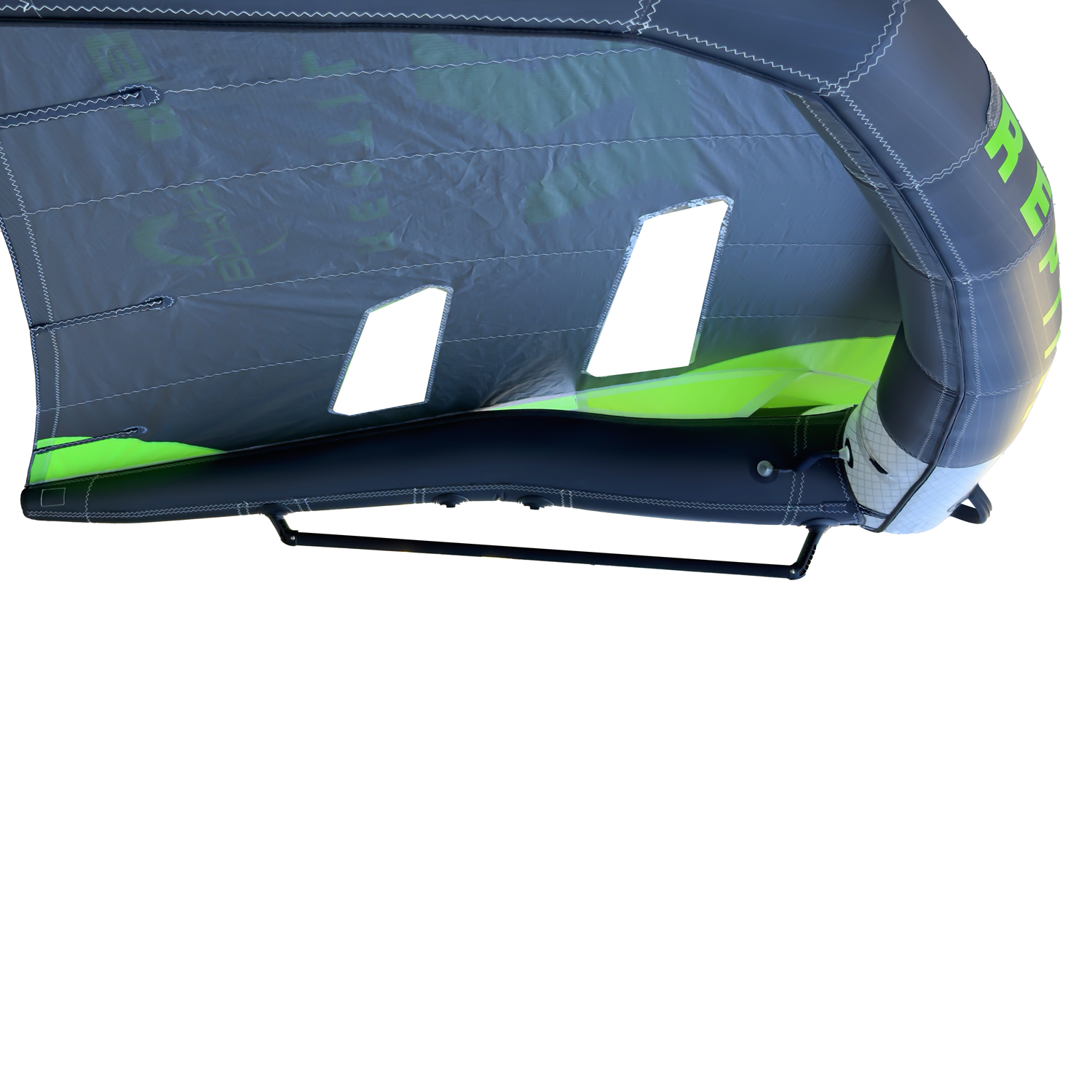 The main innovation is the X-Spine structure, made with Dimension Polyant P85 laminate in the central area of the Leading Edge. This solution stiffens the wing only where it’s really needed, while keeping more flexibility in the upper part. The result is a profile that doesn’t deform when accelerating, pumping, or catching a gust, but naturally releases excess power, preventing arm fatigue and keeping the wing light in hand.