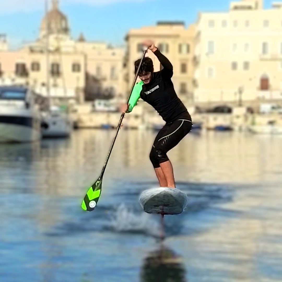 Il pin tail e i rails affinati tagliano l’acqua con la minima resistenza, migliorando l’efficienza nel pumping e rendendo ogni touchdown più morbido e controllato. Le US box extra lunghe per il foil e le molteplici opzioni per i footstrap permettono di personalizzare l’assetto secondo il proprio stile — perfetta sia per i downwind in SUP sia per le uscite in wing con vento leggero.