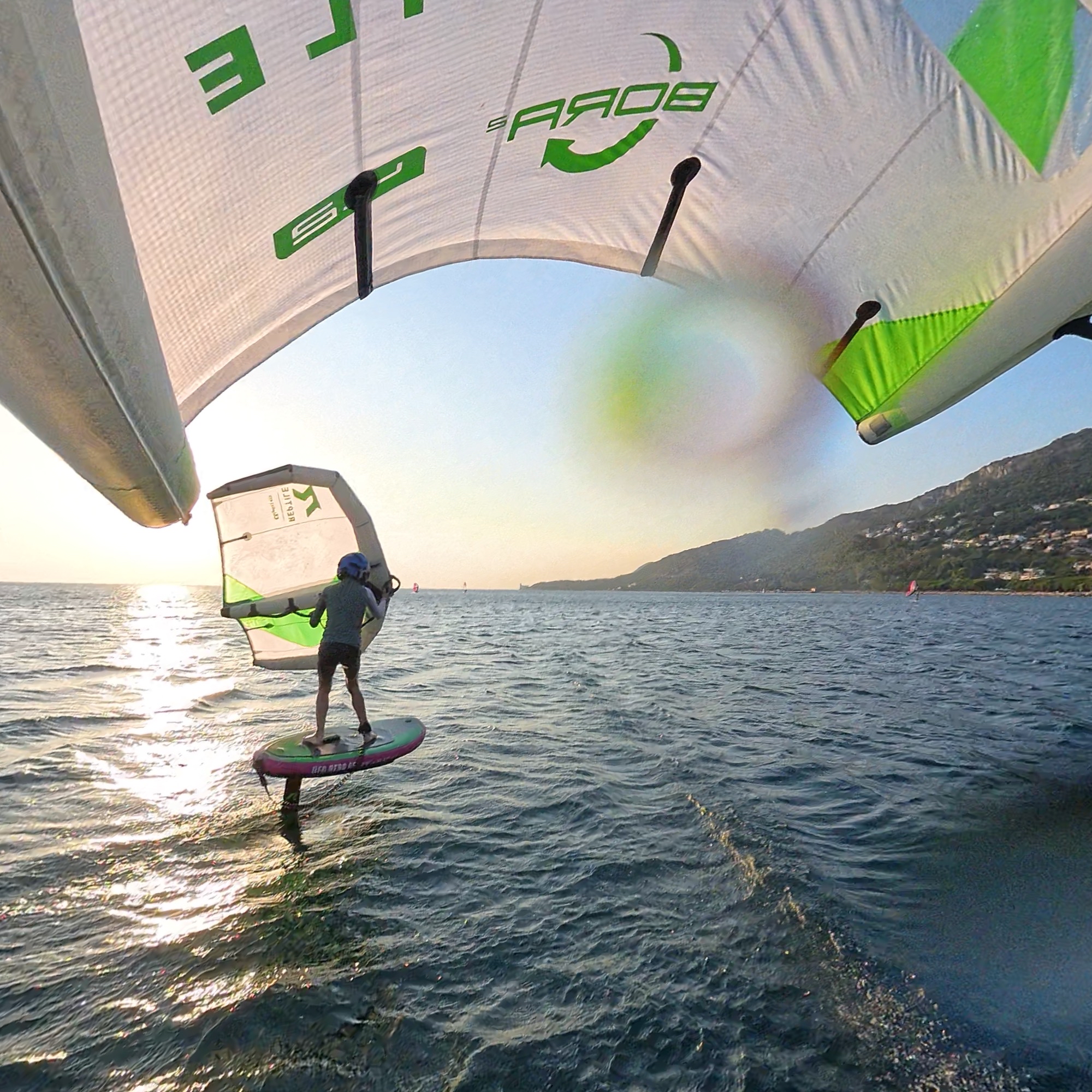 Per il wing Bora V2 abbiamo scelto una costruzione senza finestre, che dona al wing una leggerezza ed una performance migliore. Vorare con il wing offre al rider una visione di quello che lo rirconda molto ampia data la posizione del wing durante il volo al traverso e di bolina. Nelle onde poi le finestre non servono, dato che si surfa tenendo il wing dientro o a fianco a noi. La durata generale del wing inoltre è più elevata.